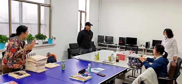 图4:俞世仲副校长查看文化课老师办公室并了解教学工作准备情况