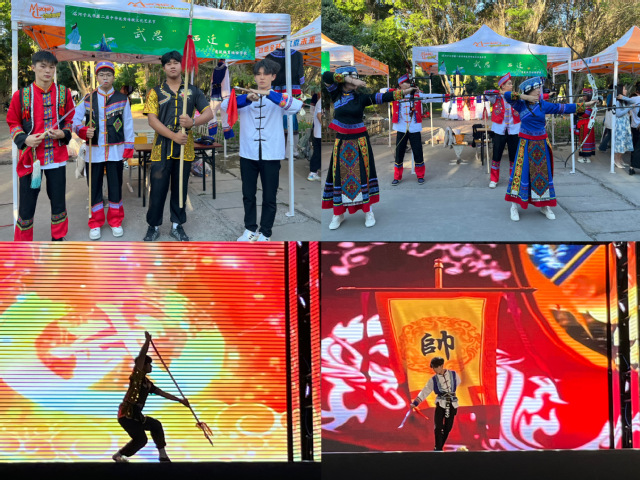 除了舞蹈表演,我校青年还展示了锡伯族传统的弓箭技艺,以及中华传统体育项目:刀、枪、棍、剑、拳。这些技艺的展示不仅让观众领略到了“骑射民族”锡伯族的特色,同时也展示了中华武术的魅力,体现了我校青年对传统文化的传承与发扬。